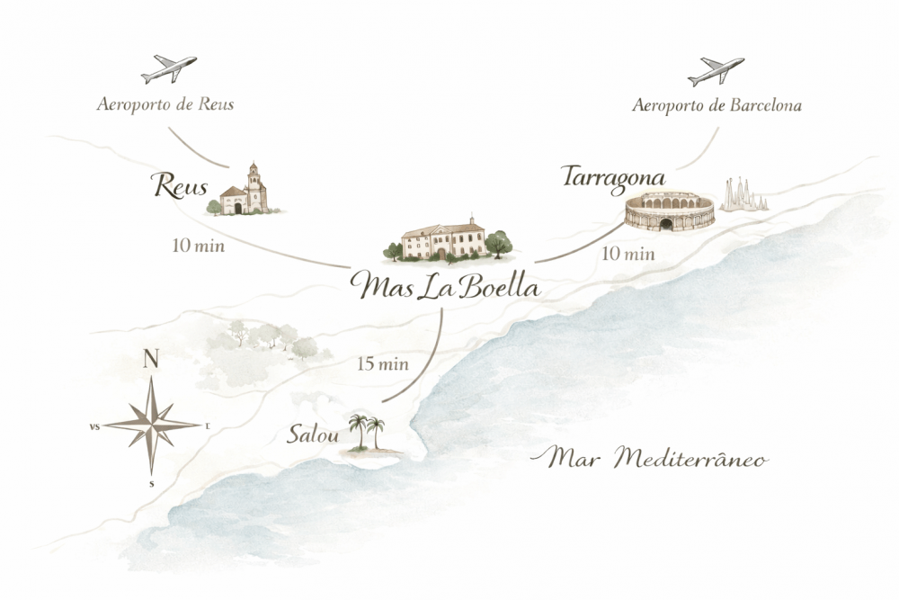A Mas La Boella está estrategicamente localizada, próxima às principais cidades da região: